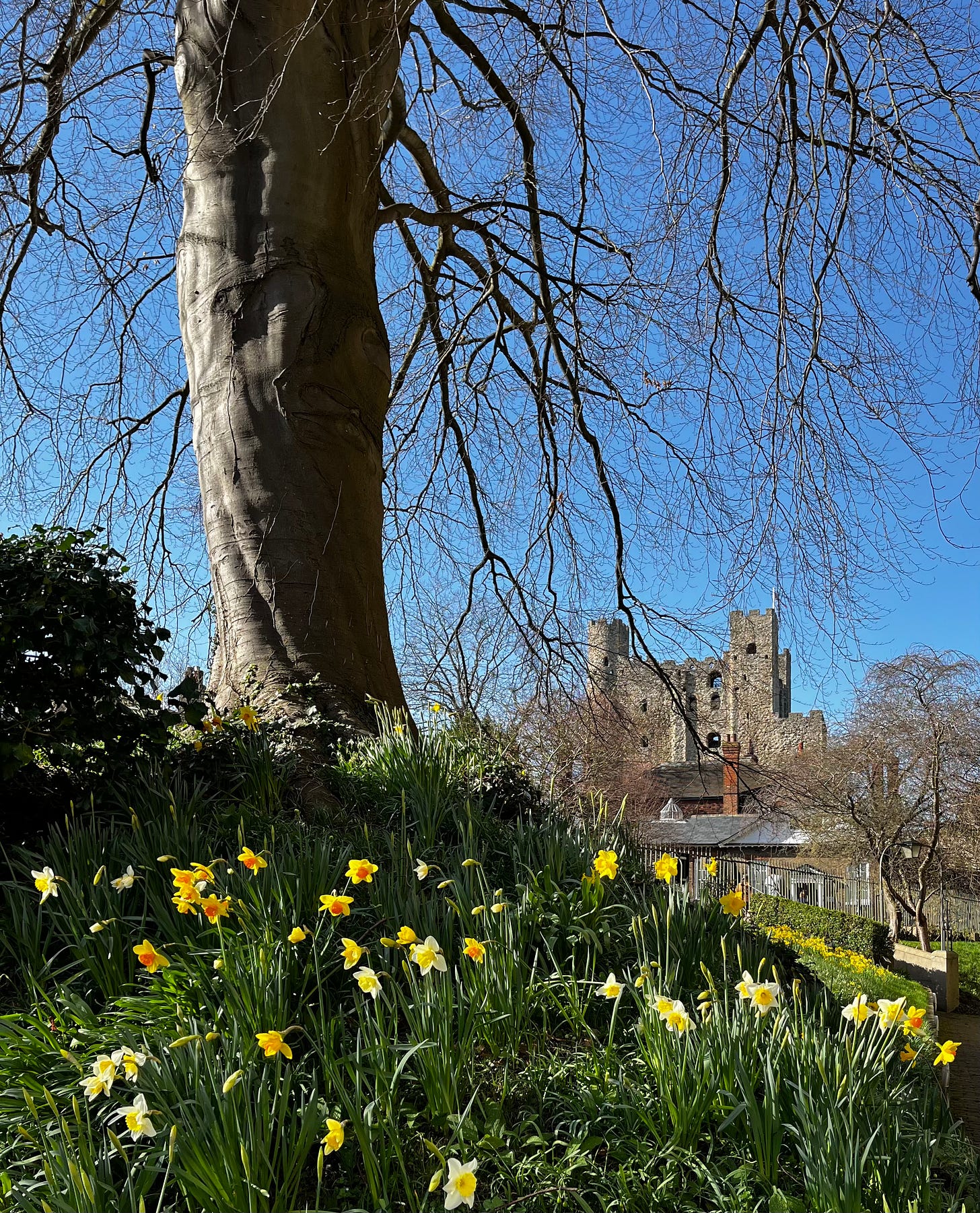 As the train draws into Rochester, crossing the River Medway, you can see the cathedral and the castle on a hill above the station.